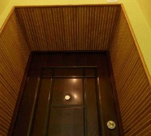 Внутренние откосы входной двериОтделку входной двери изнутри можно провести тоже разными материалами и чаще всего используется: