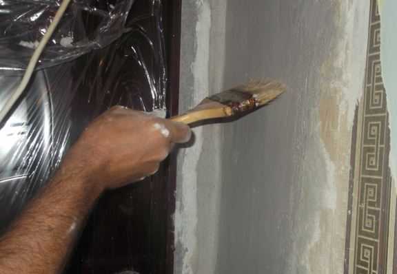 Обработка грунтовкойКогда все зачищено и убрано от грязи, пыли, необходимо обработать стены грунтовкой и подождать столько времени, сколько указано в инструкции. Правильный выбор для грунтовки – глубокого проникновения смеси. На данном этапе можно проложить проводку для света или включателя. Подготовка на этом будет закончена, и можно переходить непосредственно к монтажным работам.