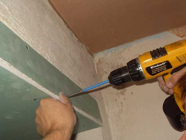 - На примыкающей стене на определенном расстоянии вкручиваются дюбеля.