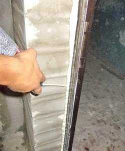 После установки дверей потребуется тщательно заделать все стыки и щели между коробкой дверей и стенок. Идеально для этого подходит монтажная пена. Когда она высохнет остатки необходимо срезать и проверить герметичность, для этого двери закрываются, а по периметру проводится зажженная спичка или зажигалка. Если пламя будет шевелиться, значит, необходимо еще раз использовать монтажный материал.