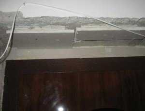 На этом этапе можно проложить электропроводку под выключатель или предусмотреть сквозное отверстие для кабеля – с этой целью можно закрепить в самом низу у плинтуса алюминиевую трубку чуть большего диаметра, чем диаметр кабеля, через которую впоследствии можно будет его проложить. Если же вы планируете обойтись формированием каркаса, то с проводом придется повозиться уже после того, как он будет создан.