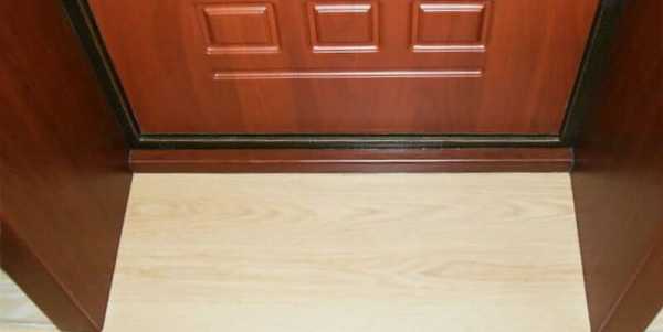 - Ламинат. Монтаж этого декора может проводиться либо вдоль, либо поперек дверного проема. А их крепление осуществляется посредством замочного крепления, которое присутствует на каждое панели.