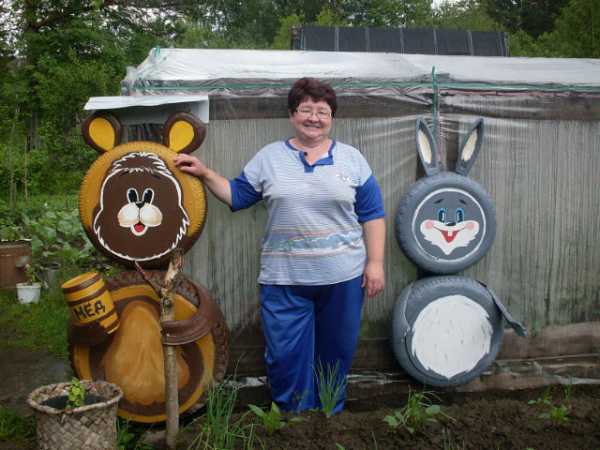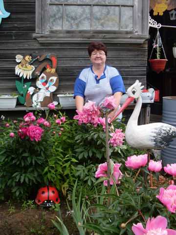 Ей нравиться украшать свой участок разными поделками.
