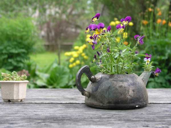 - Цветочные фантазии. Наверняка, никто не поспорит с тем, что больше всего сад красят цветы. Так почему бы не поместить их в не менее красивые «домики»? Создавайте необычайные клумбы с использованием подручных материалов, и яркие соцветия заиграют новыми красками. Итак, давайте рассмотрим парочку оригинальных вариантов:
