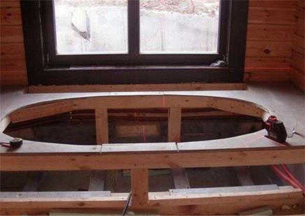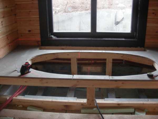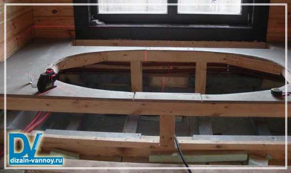 Сборка деревянного каркаса-подиума для овальной ванны