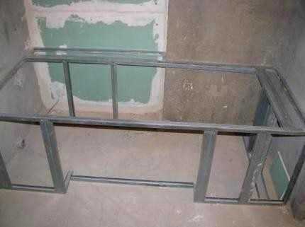 Процесс изготовления каркаса под ванну из металла похож на изготовление описанного выше деревянного каркаса, отличаясь несколькими нюансами: