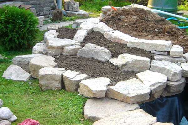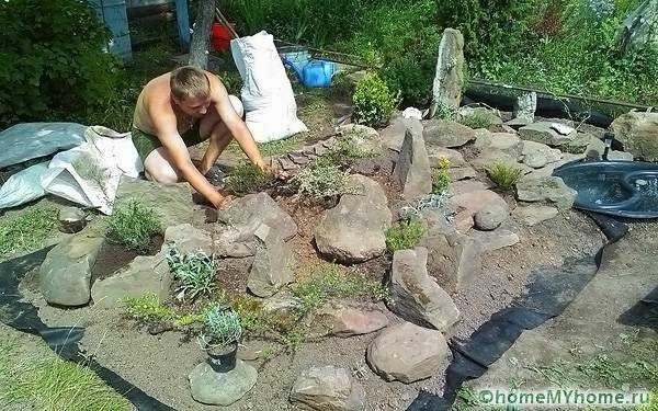 4. ΠΠΎΠ½ΡΡΡΡΠΊΡΠΈΡ ΠΎΠΏΠΎΡ Π°Π»ΡΠΏΠΈΠΉΡΠΊΠΎΠΉ Π³ΠΎΡΠΊΠΈ ΠΌΠΎΠΆΠ½ΠΎ Π²ΡΠΊΠ»Π°Π΄ΡΠ²Π°ΡΡ ΡΠΎΠ»ΡΠΊΠΎ ΠΏΠΎΡΠ»Π΅ ΡΡΠ°Π΄ΠΊΠΈ ΠΏΠΎΡΠ²Ρ. ΠΠΎ Π³ΠΎΡΠΎΠ²ΠΎΠΉ ΡΡ Π΅ΠΌΠ΅ ΡΠΊΠ»Π°Π΄ΡΠ²Π°Π΅ΠΌ ΡΠ½Π°ΡΠ°Π»Π° ΡΠ°ΠΌΡΠ΅ ΠΊΡΡΠΏΠ½ΡΠ΅ ΠΊΠ°ΠΌΠ½ΠΈ, Π·Π°Π³Π»ΡΠ±Π»ΡΠ΅ΠΌ ΠΈΡ Π½Π° 60% ΠΎΡ ΠΎΠ±ΡΠ΅ΠΌΠ°. ΠΡΠΊΠ»Π°Π΄ΡΠ²Π°Π΅ΠΌ ΠΏΠ΅ΡΠΈΠΌΠ΅ΡΡ Π³ΠΎΡΠΊΠΈ, Π·Π°ΡΠ΅ΠΌ Π²Π½ΡΡΡΠΈ Π±ΠΎΠ»Π΅Π΅ ΠΌΠ΅Π»ΠΊΠΈΠ΅ ΠΊΠ°ΠΌΠ½ΠΈ. Π Π°ΡΠΏΠΎΠ»Π°Π³Π°Π΅ΠΌ ΠΊΠ°ΠΌΠ½ΠΈ Ρ ΡΡΠ΅ΡΠΎΠΌ Π΄ΠΎΠΆΠ΄Ρ ΠΈ ΡΠ½Π΅Π³Π°, ΡΡΠΎΠ±Ρ ΠΎΠ½ΠΈ Π½Π΅ Π½Π°ΡΡΡΠΈΠ»ΠΈ ΠΎΡΠ½ΠΎΠ²Π°Π½ΠΈΠ΅. ΠΡΠΆΠ½ΠΎ ΡΠ»Π΅Π΄ΠΈΡΡ, ΡΡΠΎΠ±Ρ Π²ΡΠ΅ ΠΊΠ°ΠΌΠ½ΠΈ ΠΊΡΠ°ΡΠΈΠ²ΠΎ ΡΠΎΡΠ΅ΡΠ°Π»ΠΈΡΡ, ΠΎΡΡΠ°Π²Π»ΡΠ΅ΠΌ ΠΌΠ΅ΡΡΠΎ ΠΌΠ΅ΠΆΠ΄Ρ ΠΊΠ°ΠΌΠ½ΡΠΌΠΈ Π΄Π»Ρ ΠΎΡΠΎΡΠΌΠ»Π΅Π½ΠΈΡ ΡΠ²Π΅ΡΠ°ΠΌΠΈ.