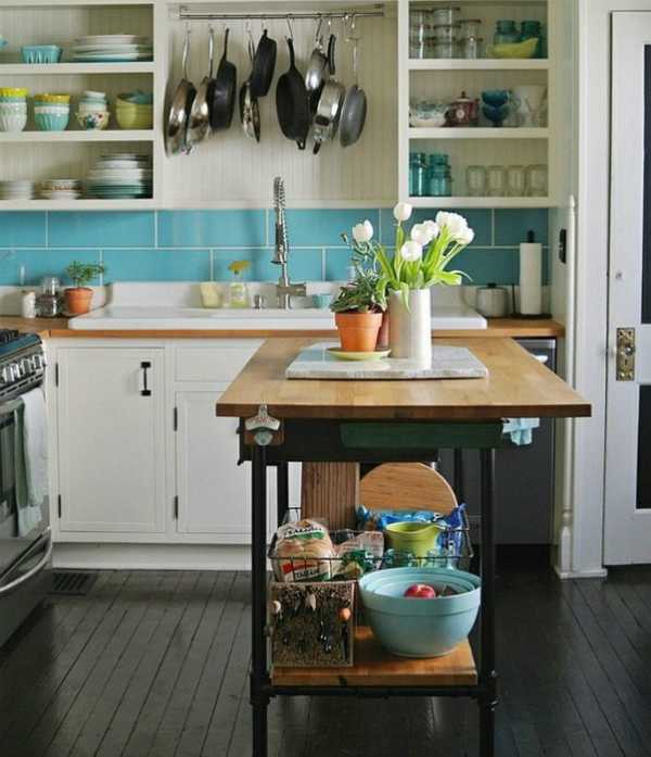 На кухне можно с умом использовать пространство под обеденным столом, под окном и на подоконнике, на стенах и обратных сторонах дверей шкафчиков.