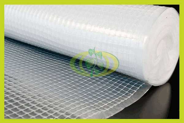 Армированная пленка производится из плотного полиэтилена с каркасом внутри. Такая пленка состоит из ячеек, потому ее прочность зависит от плотности материала, а не от толщины. Каркас может быть из стекловолокна, пропилена, прессованного полиэтилена и др. Срок службы армированной пленки, около трех лет.