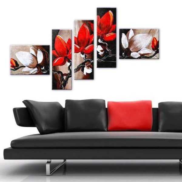 Классический интерьер прекрасно украсят репродукции известных художников на самые разные темы, это могут быть пейзажи, природа, сюжеты. В современном интерьере популярными стали модульные картины, изображение которых разбито на несколько частей, нанесено на холост и закреплено в специальной раме. Подобные картины делают его динамичным, в нем отражаются вкусовые предпочтения хозяев. Вешают их обычно над диваном или на открытой стене.