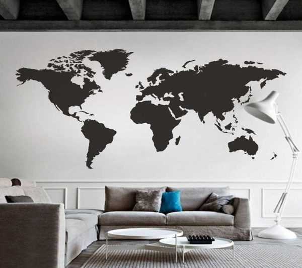 Для стиля минимализм тоже есть варианты украшения стен географической картой