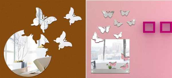 Подобные композиции можно делать не только из обычного зеркала — стекла с напылением. На рынке есть акриловое зеркало. Это гибкий и абсолютно безопасный материал. Он не дает настолько идеального отражения как «нормальное» зеркало, но для данных условий оно и не требуется. Нужен пластичный материал, с которым легко работать. Продают наборы из фрагментов разной формы и размера, на обратную сторону которых наклеен двусторонний скотч. Крепится такое зеркало просто: снимаете защитную пленку с липкой ленты, прикладываете и прижимаете. Все.