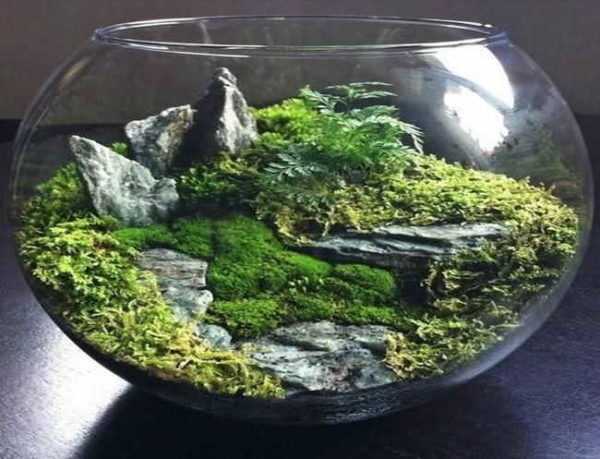 В таких емкостях можно выращивать разные сорта мха. На самом деле они очень красивы и только в таких миниатюрных садах и можно рассмотреть их до мелочей. Некоторые из них напоминают деревья или кустарники, другие больше походят на травянистые растения. Из камешков и мха создают самые разнообразные композиции, воспроизводящие настоящие ландшафты или перенося нас в сказочную страну.
