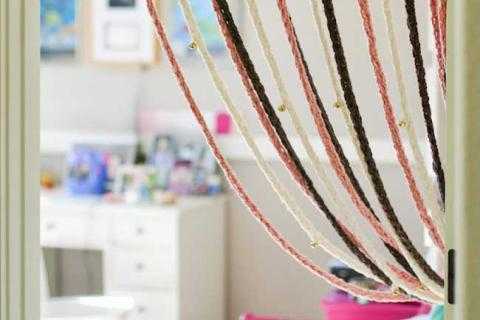 Желая украсить дверной проем или арку, воспользуйтесь следующей идеей. Стильные занавески можно создать самостоятельно, приобретя леску, которая продается в хозяйственных магазинах, и подобрав красивые крупные бусины. Просто надев и закрепив бусины на леске, вы получите струящийся шедевр, оригинальный и стильный, созданный своими руками. Подробнее о том как сделать шторы из бусин мы уже писали.