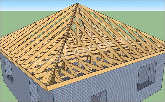 Установка стропил на вальмовую крышу