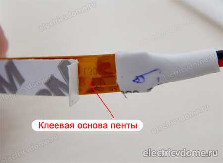 С внутренней стороны ленты обычно приклеивается двухсторонний скотч, которой значительно облегчает её монтаж и фиксацию на нужную поверхность.