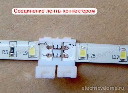 После резки, провода можно припаять к специальным контактам на ленте. Для этих же целей, а также для соединения отдельных кусков ленты друг с другом можно применить и коннекторы.