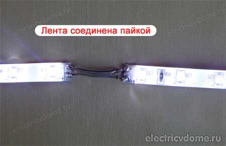 В процессе монтажа ленты необходимо припаять соответствующие контакты к ленте. При этом необходимо соблюдать полярность присоединения.