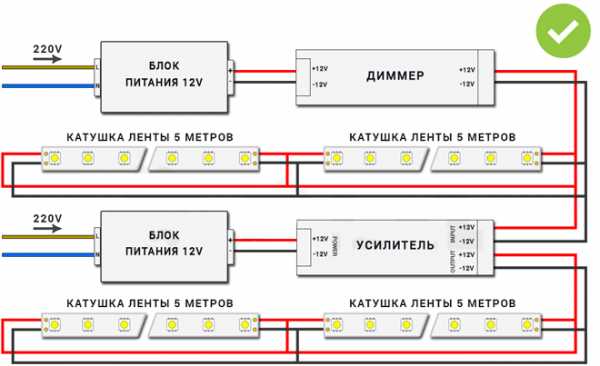 Как подключить светодиодную ленту — 3 ошибки, схема и правила для лент 12-24 Вольт