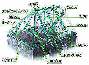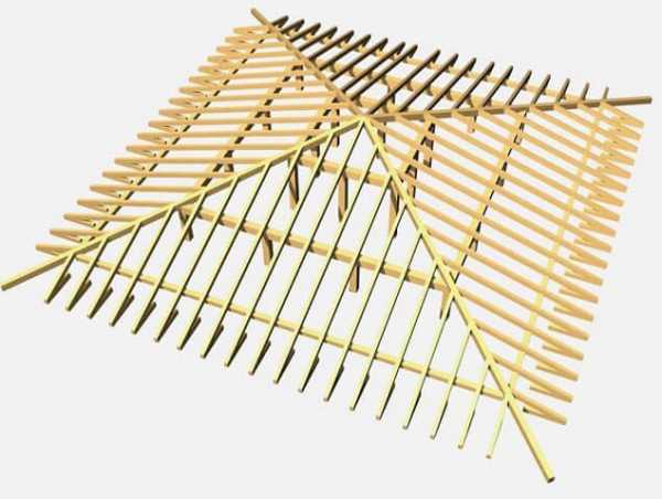Стропильная система четырёхскатной крыши состоит из множества составных частей, обязательных и вспомогательных: