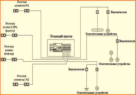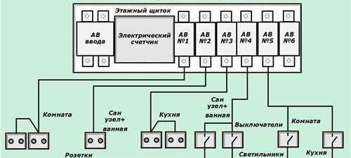 - Какой является типовая схема электропроводки в однокомнатной квартире?
