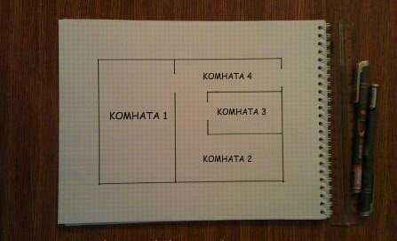 Итак, вы все спокойно обдумали. Теперь нужно начинать излагать все появившиеся планы и идеи на бумаге. Рисуйте план вашего жилища. Для примера будем разбирать стандартную однокомнатную квартиру, но все точно также и для частного дома. Для того, чтобы выполнить монтажную схему электропроводки квартиры потребуется лист бумаги, ручка, линейка, цветные фломастеры или карандаши.