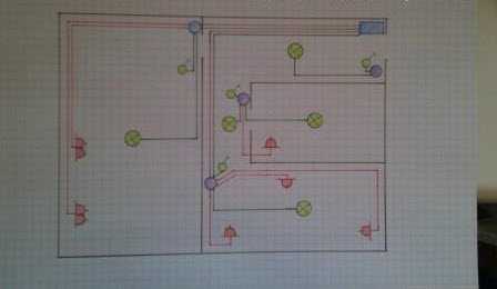 В итоге вы составите две схемы электропроводки – схему розеток и схему выключателей и светильников. Первый этап окончен. Теперь вы имеете основную часть электрической схемы.