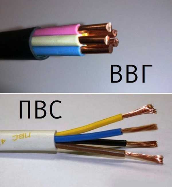Единственное различие между данными марками — это способ исполнения. Кабель ВВГнг (например 3х2.5 мм) представляет собой 3 монолитных жили с сечением 2.5 мм, а кабель ПВС представляет собой 3 жили, которые сплетены из множества мелких медных проволок.
