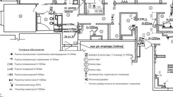 — все розетки следует размещать в местах предположительной установки бытовых приборов, на высоте 40 см.