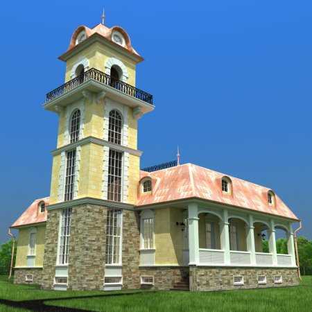Фасады дома:1-й вид, 2-й вид, 3-й вид, 4-й видЭтапы постройки: 1-й этап, 2-й этап, 3-й этап.