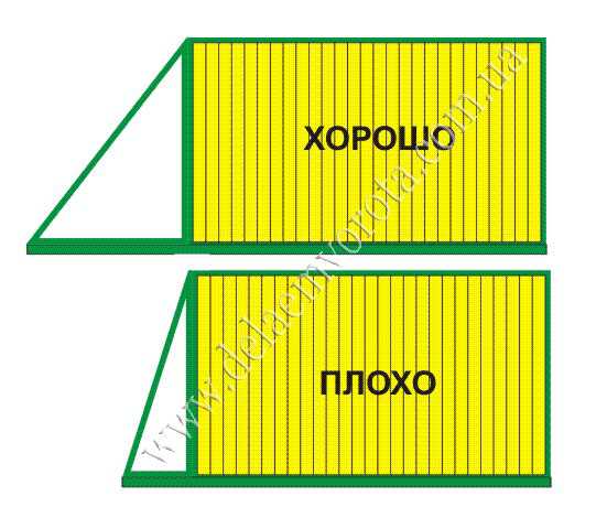 Верхний уловитель в закрытом положении ворот своими верхними скобами должен касаться защитного уголка передней кромки полотна.