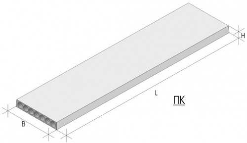 Пустотные (ПК) плиты перекрытия имеют пустоты круглой или овальной формы. У плит с пустотами круглыми стандартная высота равна 220 мм. Пустотные плиты выпускают следующих размеров: ширина 100, 120, 150 мм.