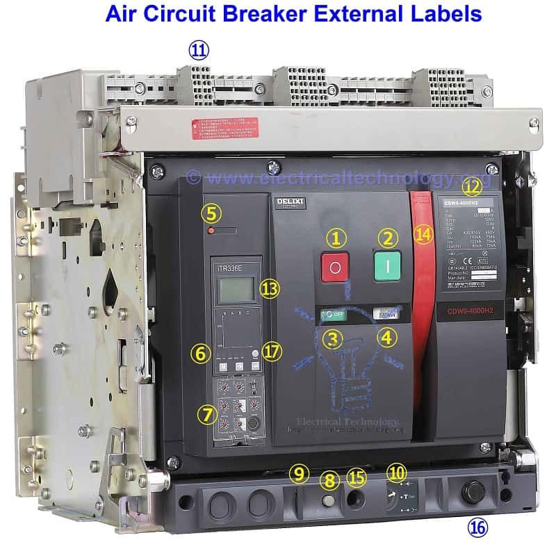 Воздушный выключатель (ACB) — это устройство электрической защиты, используемое для защиты от короткого замыкания и перегрузки по току до 15 кВ с номинальным током от 800 до 10 кА. Он работает на воздухе (где продувка воздухом в качестве средства гашения дуги) при атмосферном давлении для защиты подключенных электрических цепей. ACB полностью заменен масляным автоматическим выключателем, потому что он по-прежнему является предпочтительным выбором для использования ACB, потому что нет возможности возгорания масла, как в масляном выключателе.