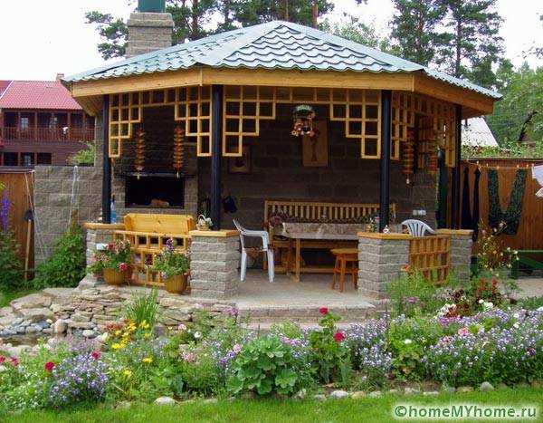- открытые беседки (просты в строительстве, применяются в основном летом),
