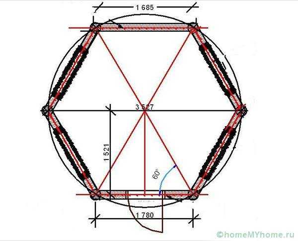По его крайним точкам ориентируется положение стоек каркаса. Преимущество шестигранного купола в интересном внешнем виде, лучшей устойчивости к ветру и снегу.