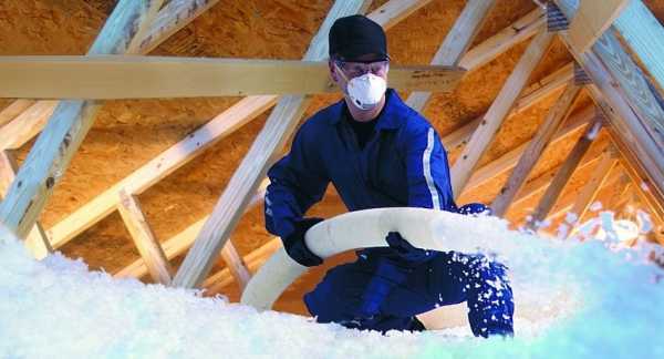 - Высокая производительность труда при нанесении напылением увлажненной (на что следовало бы обратить внимание и профи): пол, стены, потолок и крыша (!) дома с мансардой площадью в плане 120 кв. м «задуваются» за 1 рабочую смену.