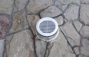 Снаружи выходная труба защищается от птиц, грызунов и попадания мусора мелкозернистой решёткой. Устраивается козырёк, исключающий проникновение осадков внутрь.