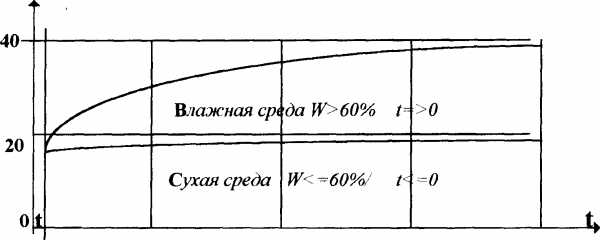 Снижение температурных показателей среды ведет к замедлению твердения. Нулевая отметка на термометре останавливает процесс из-за замерзания воды в камне (снижается качество бетона), а подъем значений снова его возобновляет. Смесь начинает высыхать при недостатке или отсутствии влаги, однако это может замедлить и остановить правильное твердение, что воспрепятствует набору заданного свойства бетоном. А вот автоклавное отвердение смесей значительно ускоряется при повышенных значениях температурно-влажностного режима: 80 – 90 град. и 100% влажности, что ведет к ускоренному росту прочностных показателей. За счет влаги в воздухе может сокращаться интервал набора прочности раствором, который уложен открыто.