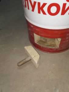 После этого у бочки срезается заливная горловина. Внизу емкости вырезается прямоугольное отверстие – для поддувала. Все, бочка готова к дальнейшей работе.