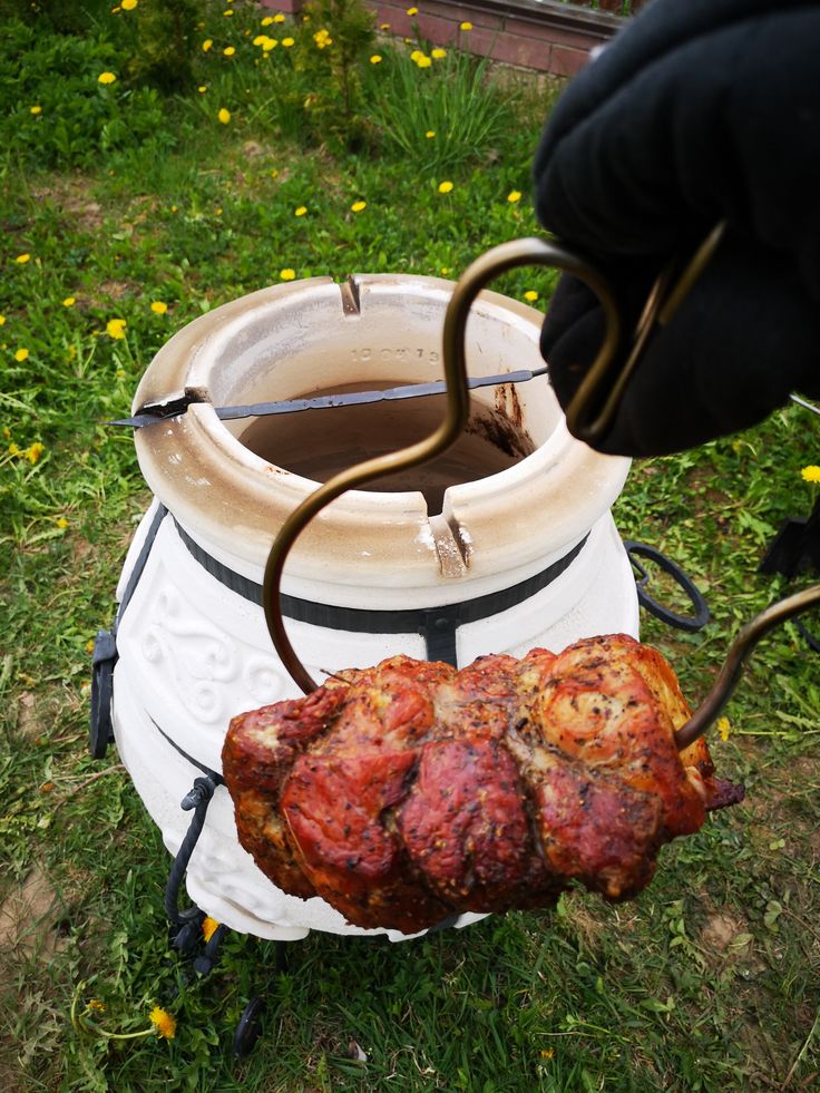 Рецептов Вы найдете бесконечное множество, но вот как опустить и достать чугунок. Есть много приспособлений: ухваты, специальные решетки, цепи. Выбор большой, но удобнее всего пользоваться цепями.Далее следует самый важный и самый простой этап – приготовление. Преимуществом тандыра, является то, что он готовит сам. Вам остается лишь регулировать время. У каждого блюда оно свое. Так мясо на шампуре в тандыре готовится 10-15 минут, курица 30-40 минут, гусь и баранья нога – 1-1,5 часа. В любом случае время приготовления индивидуально, зависит от используемого тандыра, температуры окружающего воздуха, ветра и конечно рецепта. Для первых экспериментов с тандыром рекомендуем через небольшие промежутки времени проверять готовность, идеально с помощью специально термометра, а с опытом, Вы будите ориентироваться на глазок.