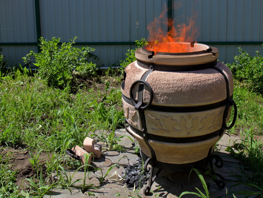 Переносной тандыр для приготовления мясных блюд.В большие тандыры загружается большее количество дров, что дает довольно много жара, а также можно приготовить одновременно несколько вариантов блюд. Таким печкам не нужна очистка от дров перед готовкой, чего не скажешь о тандыре маленького размера.