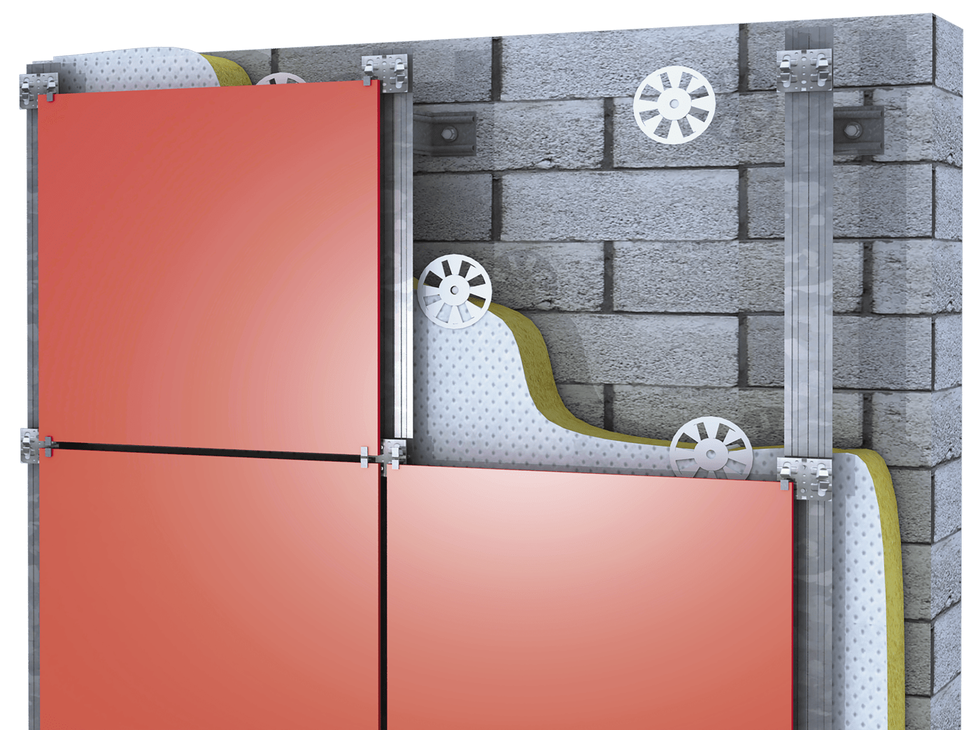 Сборка этих компонентов создает воздушный зазор который обеспечивает естественную вентиляцию через так называемый дымоходный эффект. Эффект, который становится намного больше эффективен, когда вентилируется весь фасад.