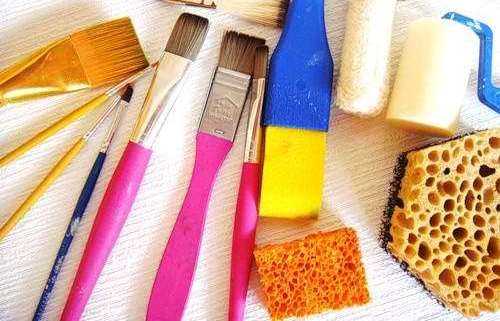 Сначала определяемся с инструментом, который нам в этом поможет. Нанести краску можно кистью, губкой, валиком и краскопультом. После нанесения ей можно будет придать художественные эффекты, а можно делать это все одним махом (например, в случае с валиком). Кистью работать долго, что может немного испортить слой, если не успеете прокрасить все равномерно и быстро, поэтому подходит она только для небольших участков. Краскопульт – быстро и эффективно, но нужна некоторая сноровка, чтобы не дать краски в одном месте больше, а в другом меньше. Держать его следует строго под углом 90 градусов к поверхности, силу нажима не менять.