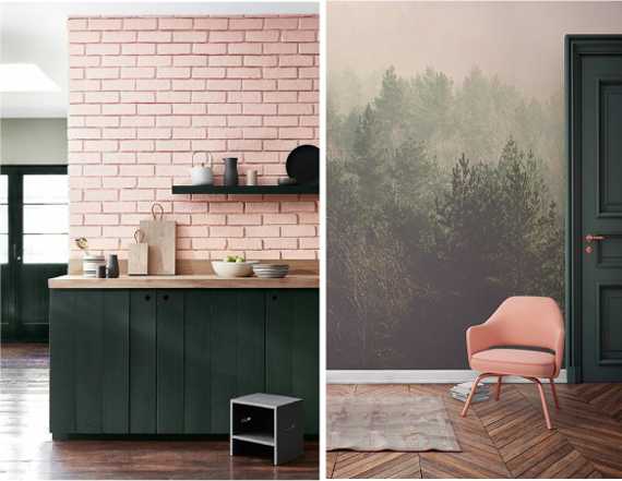 Если есть желание отойти от классики и сделать нечто неординарное, рекомендуется сочетание с деревом – имеются специально обработанные панели с имитацией деревянной стены или даже лесного массива. В таком случае необходимо тщательно продумать особенности освещения, поскольку комната получится темнее, но и необычнее.