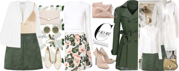 Например, если сочетать белый и салатный, то получится свежий образ, навевающий оптимистические, радостные нотки. Тандем белоснежного делового костюма с оливковым пиджаком – однозначно деловой образ, уместный и на торжественном мероприятии.