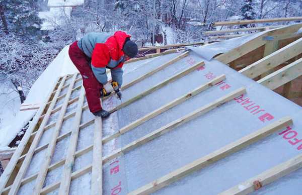 - Контробрешетка устанавливается параллельно стропилам и прижимает гидроизоляцию. Служит креплением для обрешетки кровли.