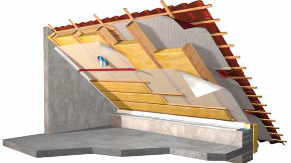 - если используется минвата, то сначала между стропилами прямо под черепицу устанавливается утеплитель, а следующий слой монтируют с внутренней стороны между контррейками.
