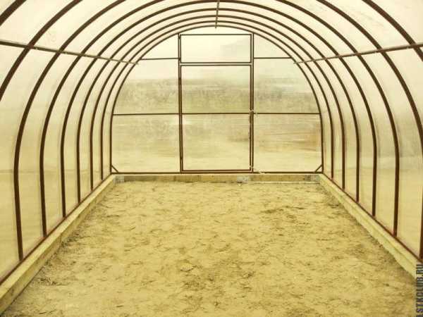 - Высокая арочная теплица, своими размерами позволяющая не ползать по грядкам, а спокойно передвигаться от одного растения к другому. Сформировать грядки и дорожки между ними.