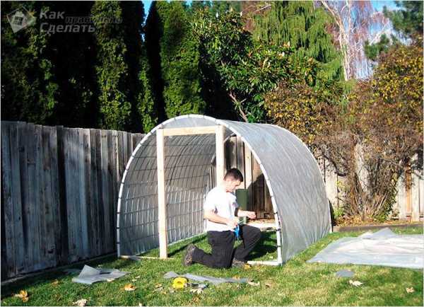 6. Каркас готов, теперь можно накрыть его укрывным материалом (например, плотным полиэтиленом). Укрывной материал можно закрепить
