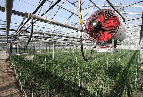 Второй вариант по экономности и эффективности: воздушный обогрев почвы. В грунт закапывают асбестовые трубы, в них при помощи вентиляторов системы воздуховодов подают разогретый воздух. Система не очень эффективна из-за малой теплоемкости воздуха. Но можно сделать скорость потока больше, за счет вентиляторов больше мощности.